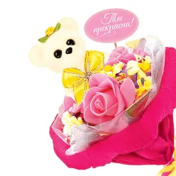 • Уменьшенный - роза - 5 шт., зелень, топпер, упаковка, лента