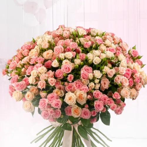 • Экстра - роза кустовая - 15 шт., гипсофила, упаковка, лента