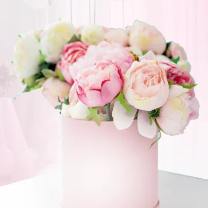 Букет с пионовидными розами в шляпной коробке