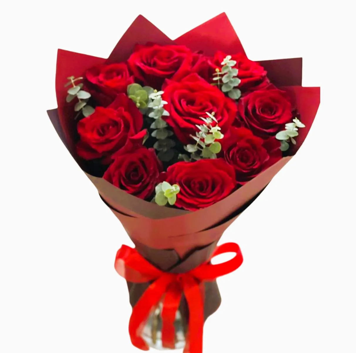 - Стандарт - 7 роз, зелень, оформление, упаковка, лента