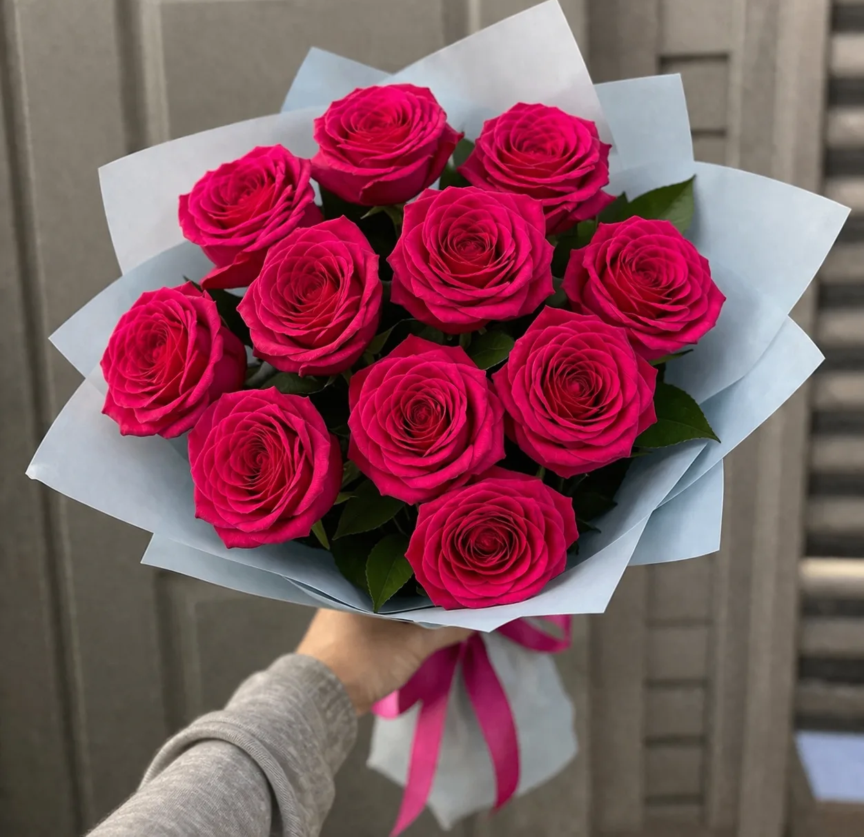 Элегантный букет с малиновой розой притягивает взгляд насыщенным оттенком и выразительной красотой. Глубокий цвет символизирует яркие чувства и искренние эмоции, а светлая упаковка создаёт гармоничный контраст, подчёркивая изысканность композиции.