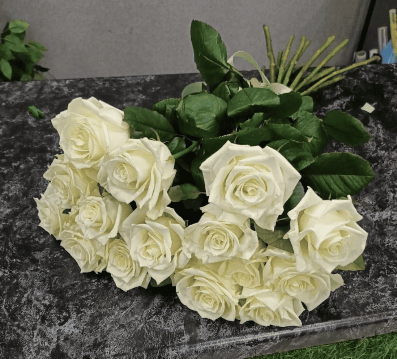 —Букет из 15 белых роз под ленту