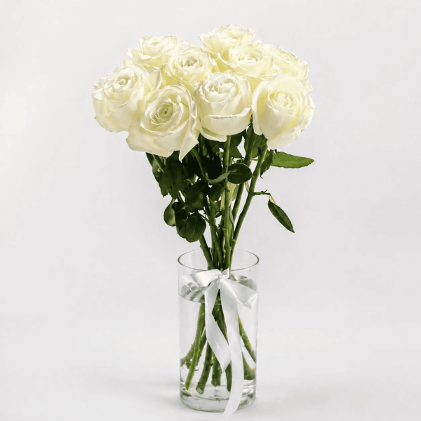 —Букет из 9 белых роз под ленту