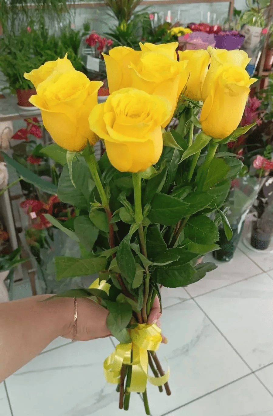 Букет из 9 жёлтых роз, собранный в лаконичную композицию и перевязанный атласной лентой, - это тёплое и искреннее послание радости, внимания и добрых чувств. Яркие солнечные оттенки роз наполняют образ лёгкостью и позитивом, создавая ощущение уюта и хорошего настроения.