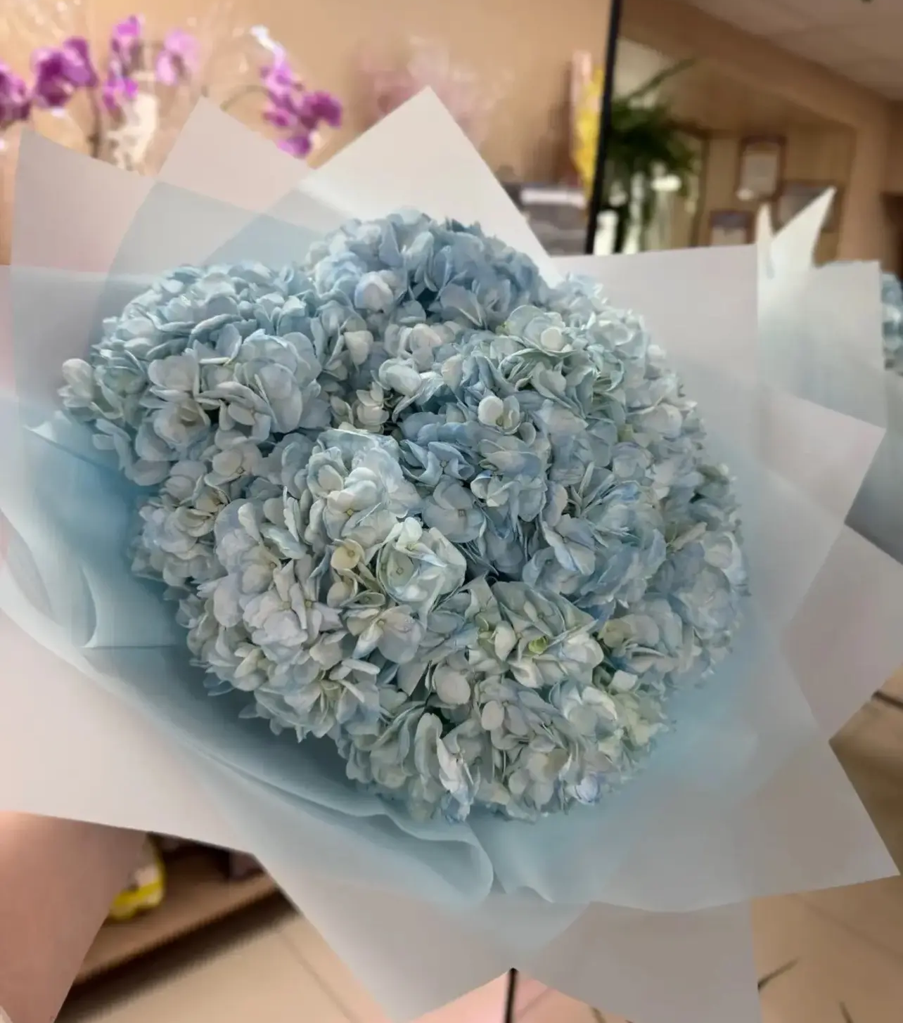 Голубые гортензии символизируют искренность, понимание и душевную глубину = такой букет скажет больше, чем слова.