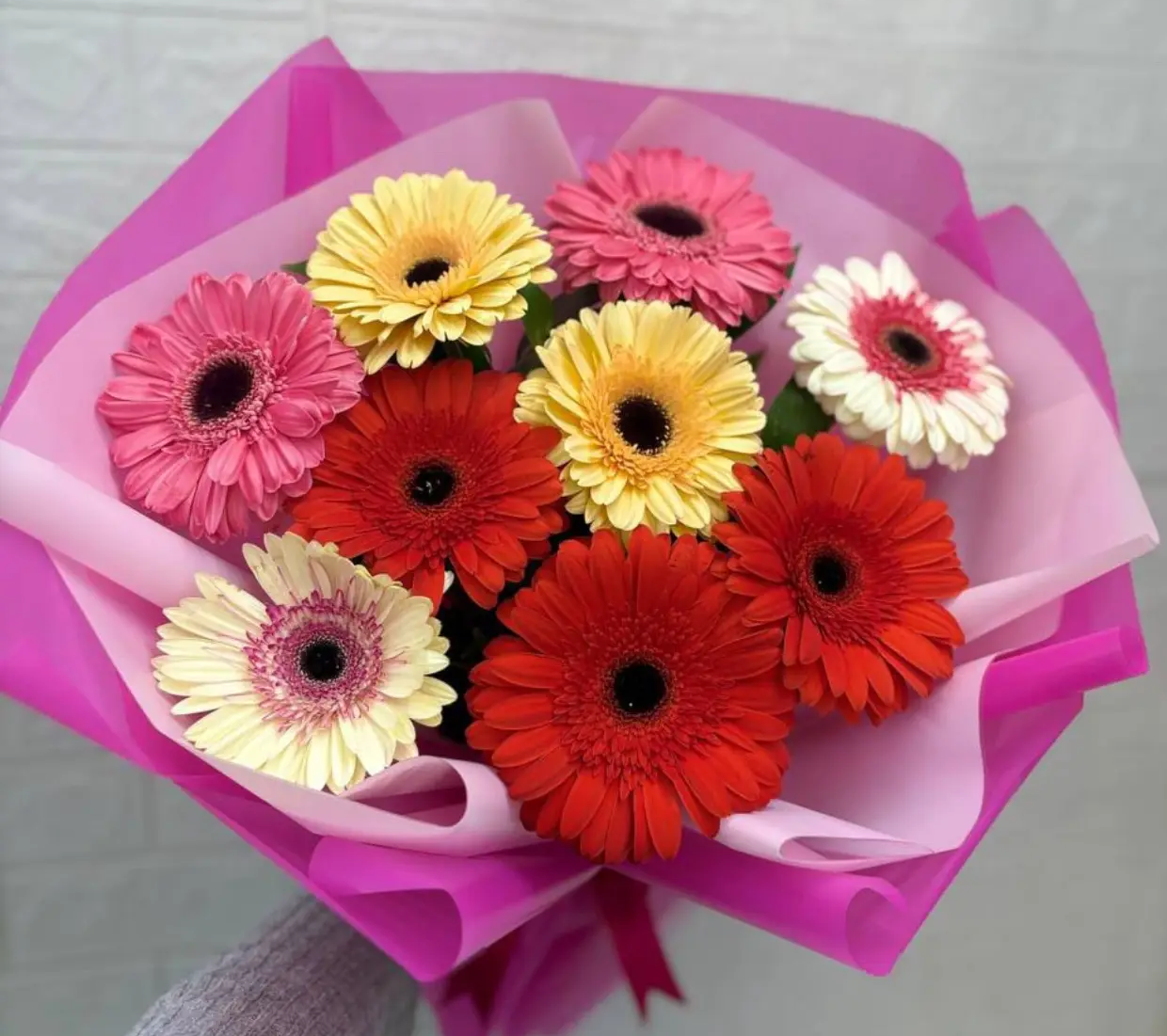 • Средний ( гербера - 9 шт., упаковка, лента + рафаэлло)