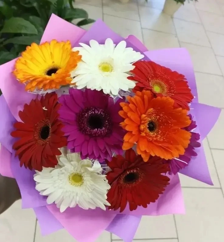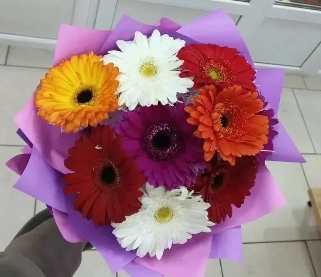 • Премиум - гербера - 9 шт., упаковка, лента