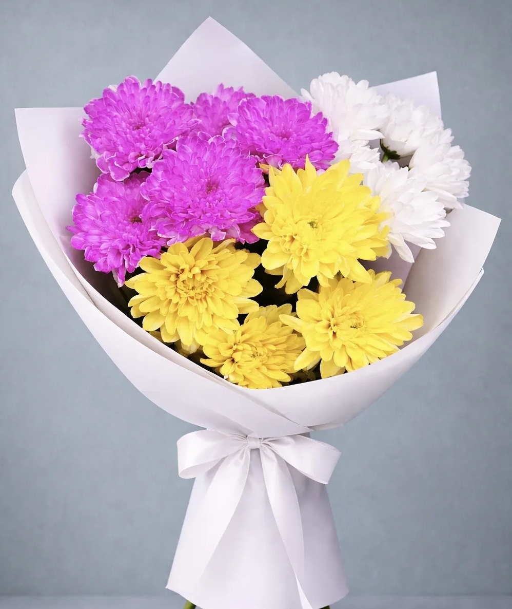 Кустовые хризантемы 3 шт, упаковка ,лента |