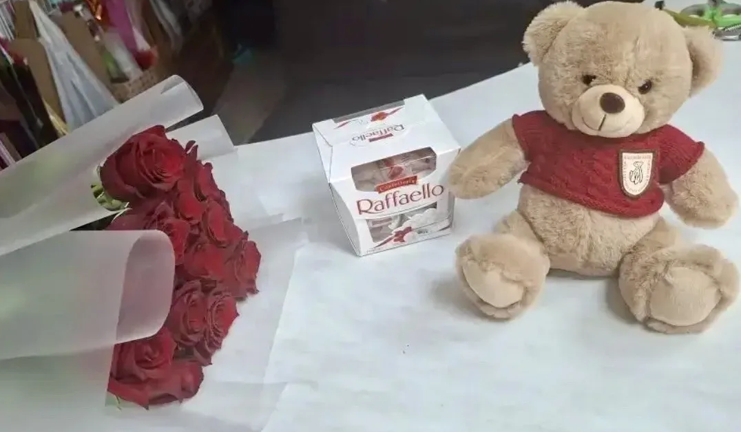 Букет роз, игрушка, Раффаэлло 150 гр.