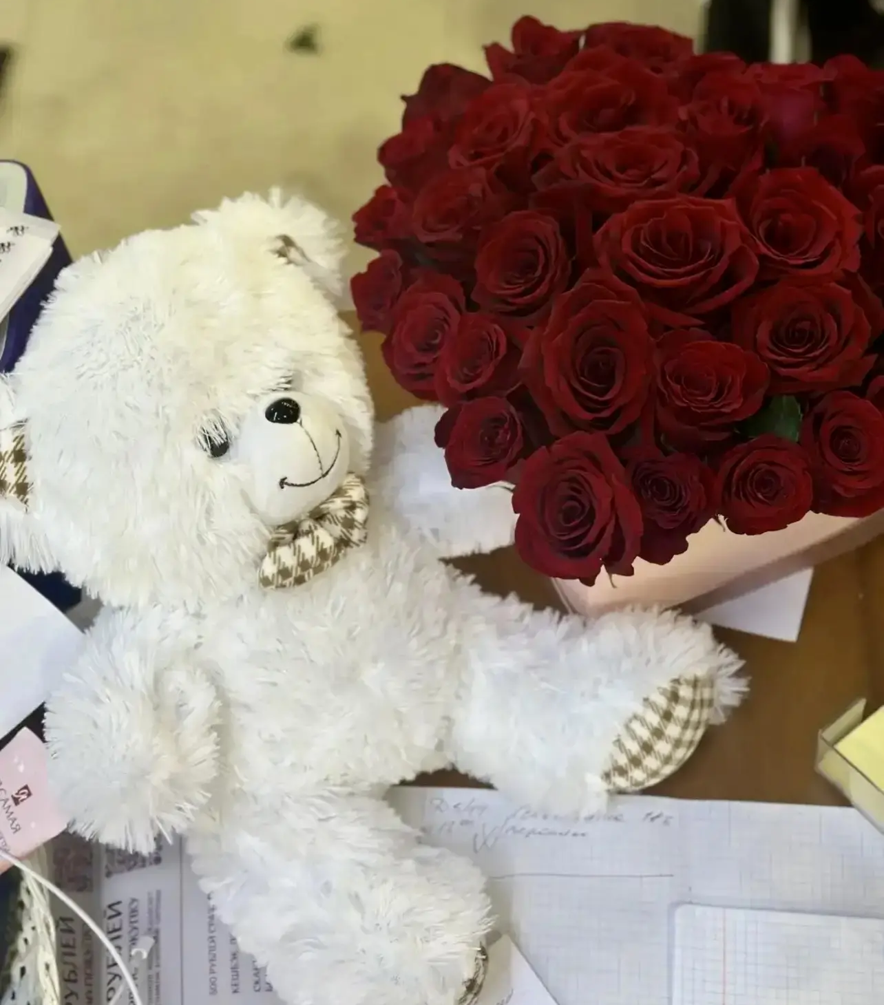 Кмопозиция в форме сердца, мишка, рафаэлло
