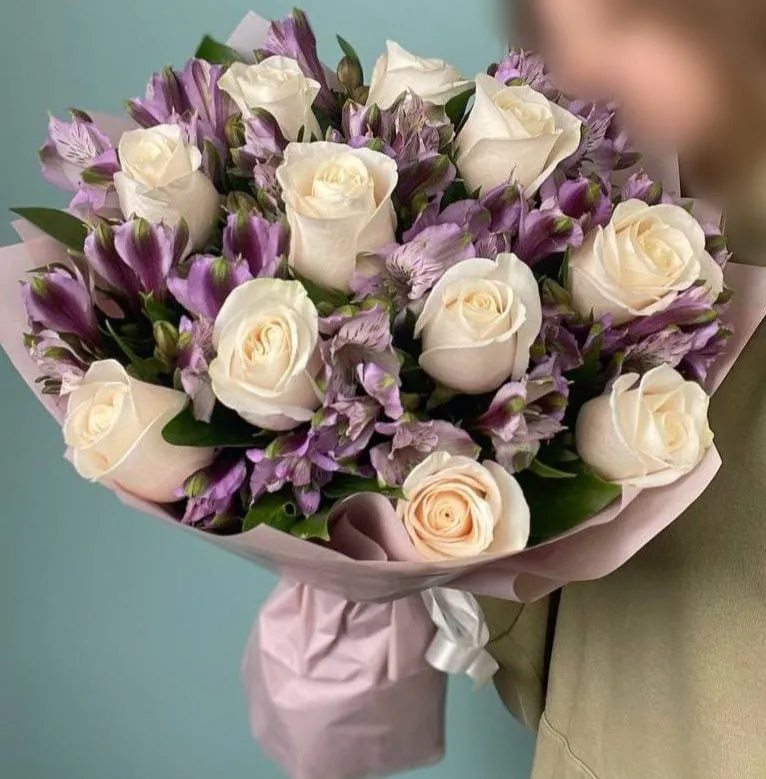 Не упустите возможность подарить своим близким этот изысканный букет из белых роз и фиолетовых альстромерий, который станет символом любви, вдохновения и теплоты!