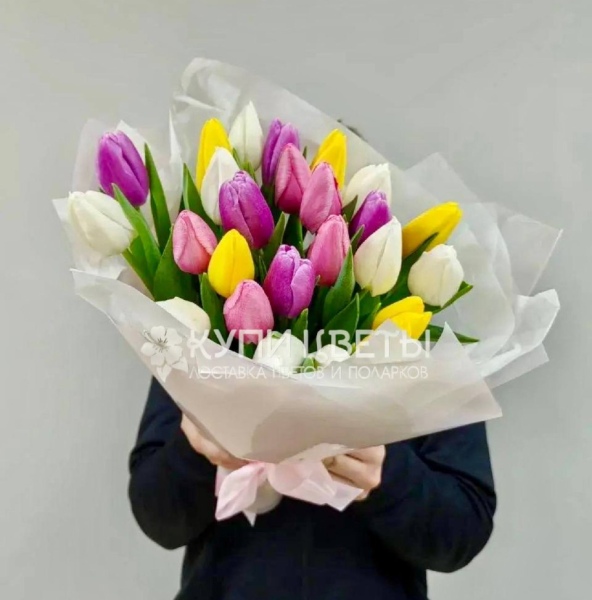 Тюльпаны 25 шт, упаковка, лента |