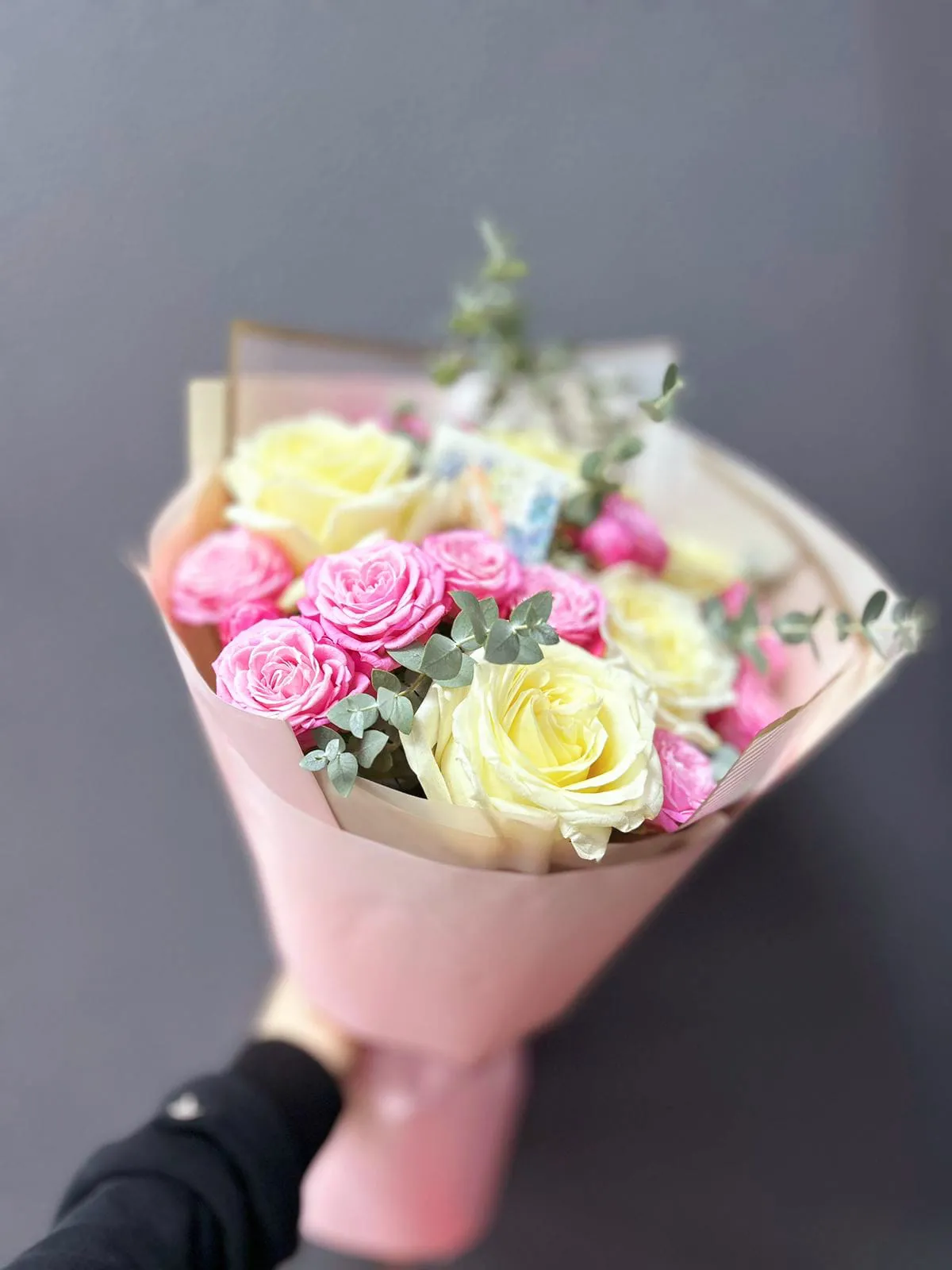 Еще один вариант недорогого букета из цветов в нежных оттенках, который сделает обычный день вашего получателя чуточку счастливее, а улыбку лучезарнее. Необычный подарок не останется без внимания и о вас еще долго будут говорить в положительном ключе.