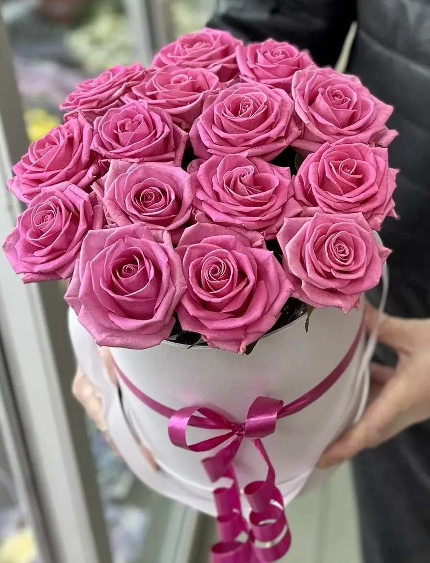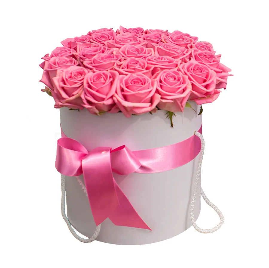 - Средний-25 роз, шляпная коробка, оазис