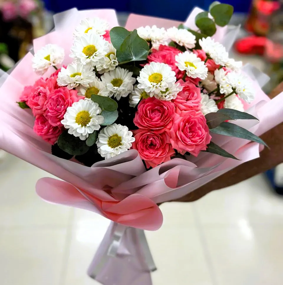 Букет из нежных кустовых роз и хризантем – это истинное произведение искусства, способное украсить любой праздник. Эти цветы в сочетании создают невероятное гармоничное настроение.