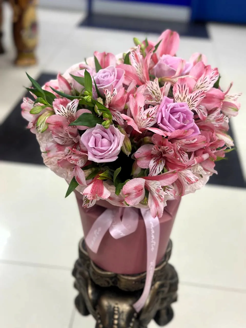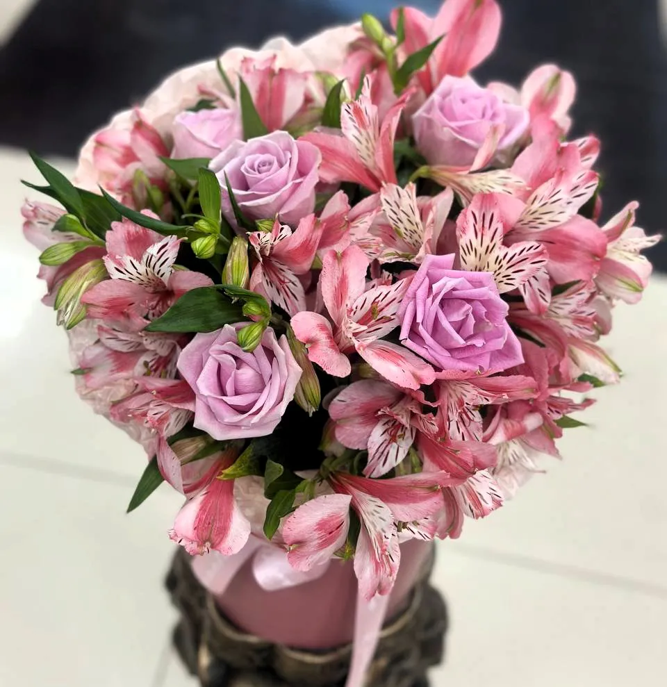 Розы, альстромерии, зелень, коробка, оазис |