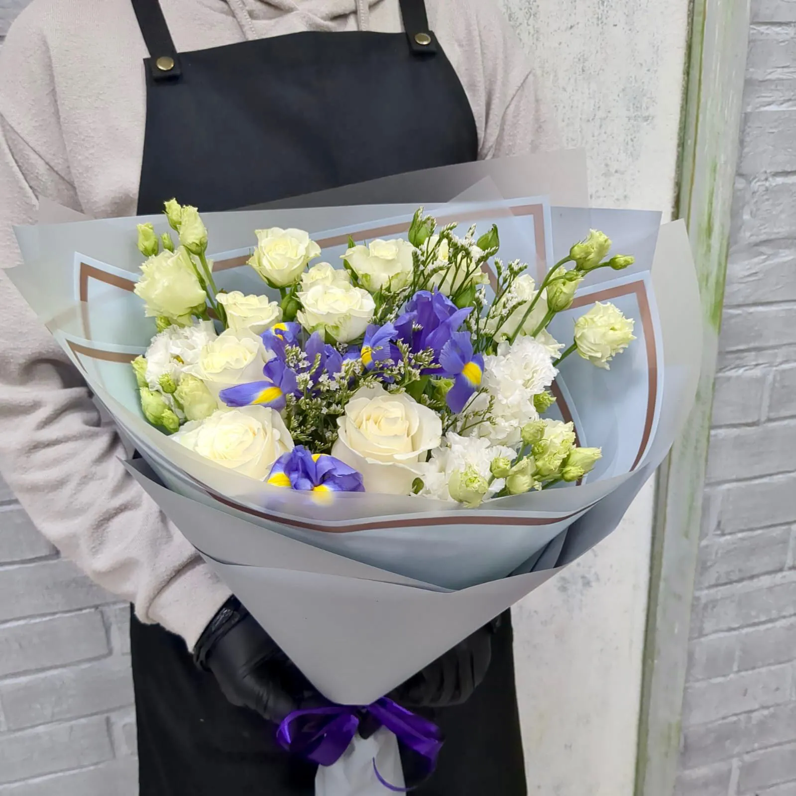 Белоснежные эустомы, невероятно красивые ирисы, непременно доставят удовольствие получателю. Актуален такой подарок и в самый обыденный день, принося вместе с собой целое море позитивных эмоций, а также напоминая о счастливых минутах жизни. Нежность, трепетность и природная красота такого букета никого не оставит равнодушным. С ним волшебство и ощущение любви станут намного ближе, а значит ваш подарок будет оценен по достоинству.